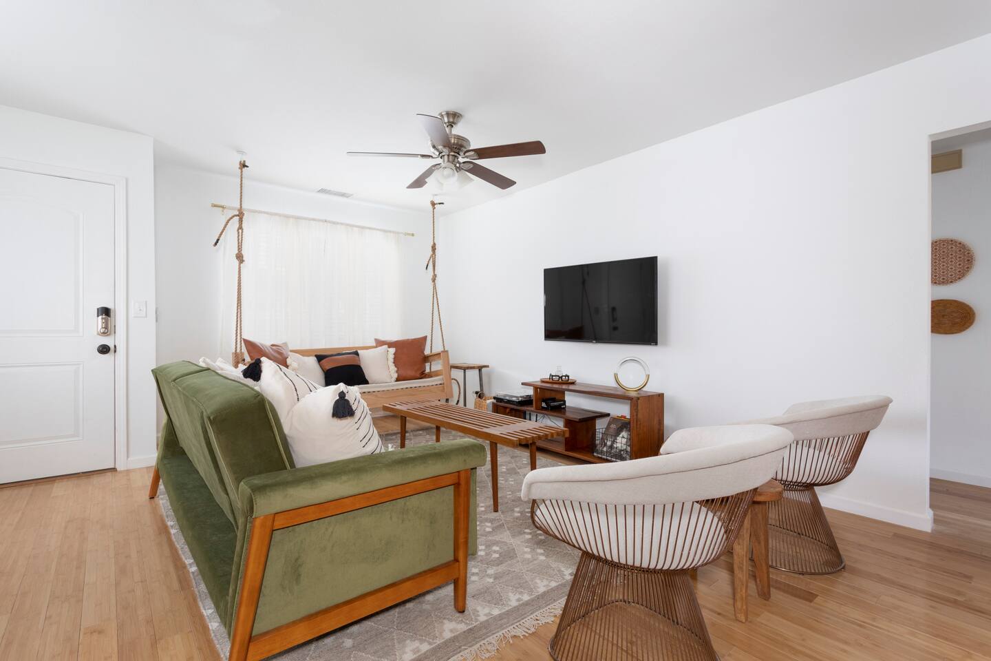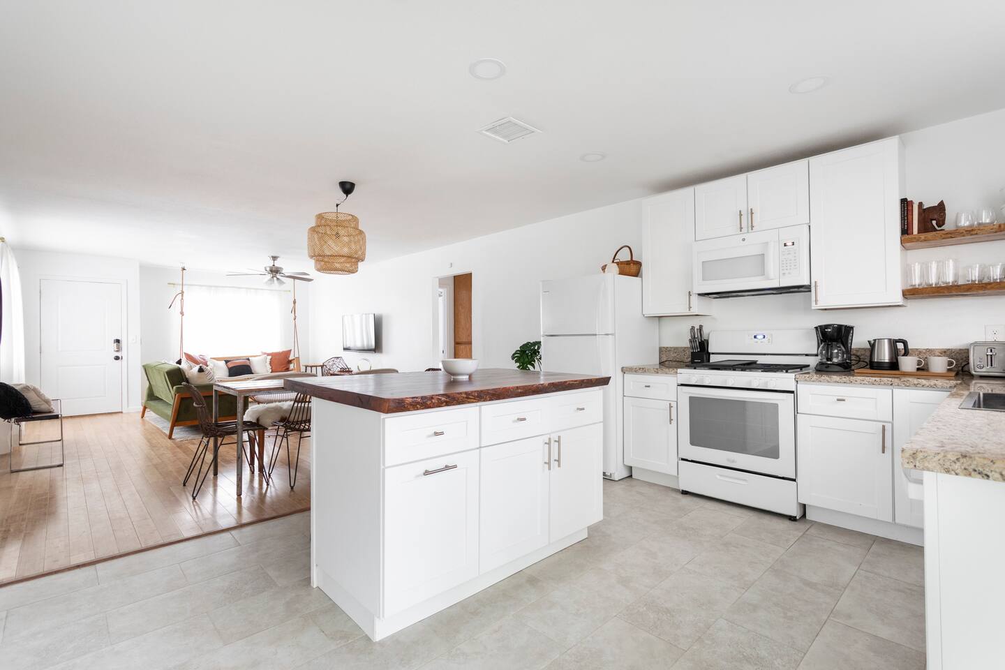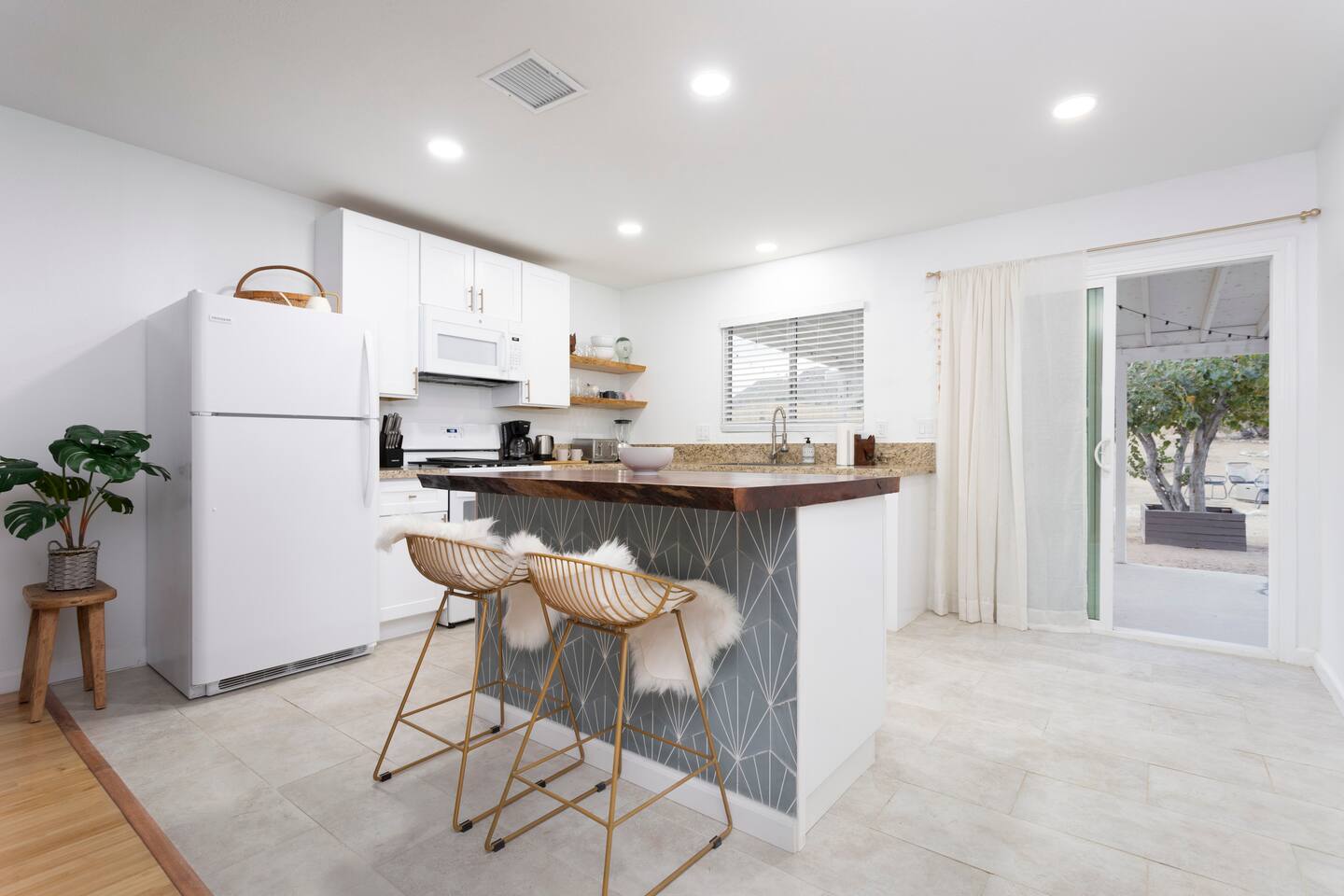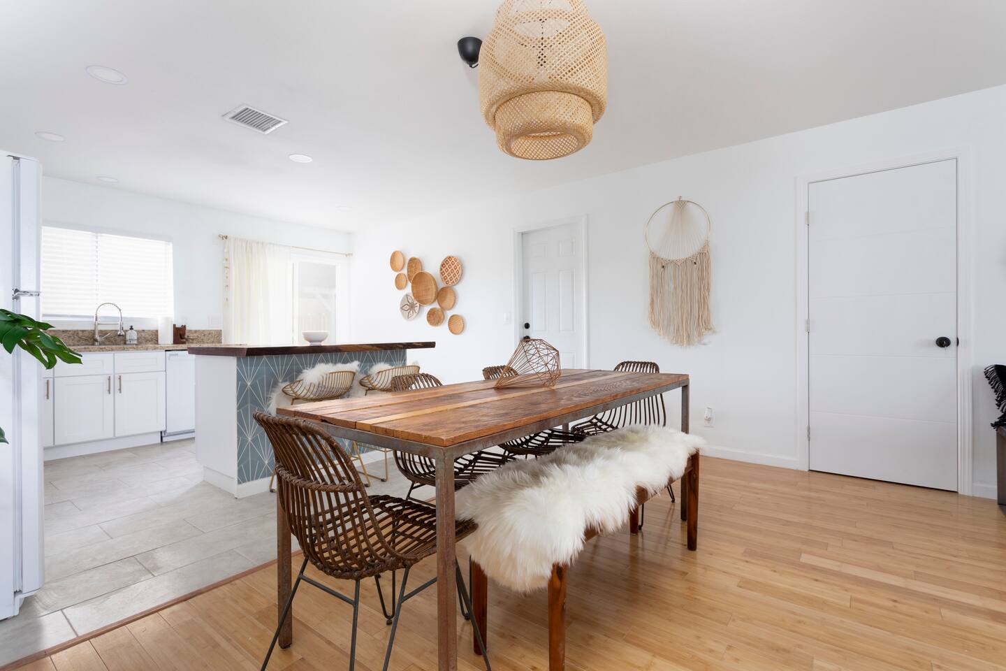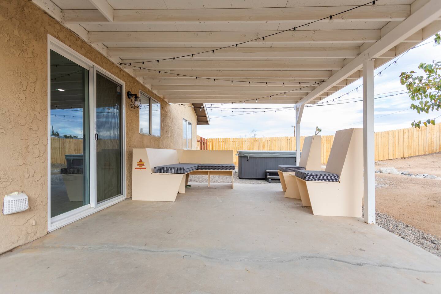The ideal spot! This duplex home, private game room, lazy hammocks, new memory foam mattresses, and beautiful touches make this home THE place for your getaway in Joshua Tree. The game room is stocked with pool, ping pong, shuffleboard, and Pac Man. Think of the memories that are waiting to be made! The backyard has been transformed into a private oasis. Refresh with a soak in the hot tub, star gaze from macrame hammocks, sit by the fire pit, and grill up dinner on the BBQ grill. These details are what create an incomparable experience.